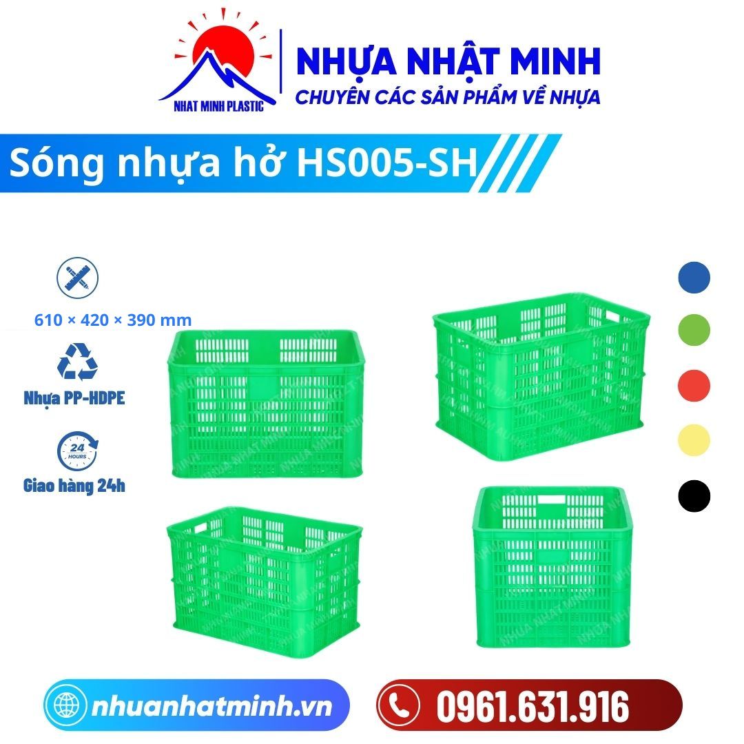 Sóng nhựa hở HS005‑SH là dòng sóng nhựa công nghiệp thiết kế thoáng khí, chịu lực tốt và sản xuất từ nhựa HDPE chính phẩm cao cấp. Với kích thước lớn và thiết kế lưới hở, sản phẩm giúp lưu thông không khí, hạn chế ẩm ướt và giảm thiểu hư hỏng hàng hóa trong quá trình lưu kho và vận chuyển. Sóng nhựa HS005‑SH phù hợp đa dạng với nhiều loại sản phẩm như hàng may mặc, thực phẩm tươi sống, trái cây và thủy hải sản.