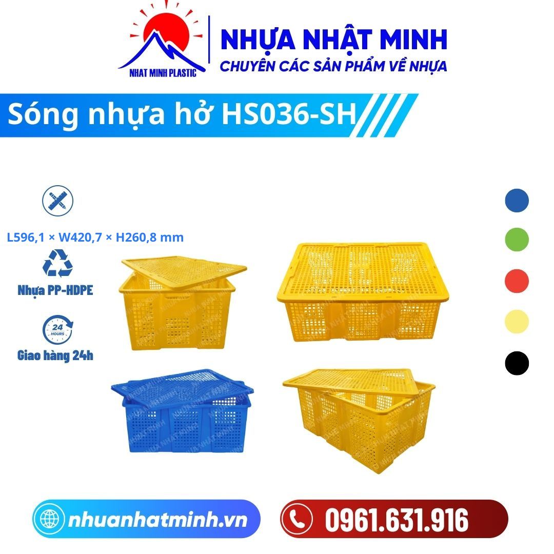 ✨ Khi chọn sóng nhựa hở HS036‑SH của Nhựa Nhật Minh, bạn nhận được sản phẩm chất lượng cao – bền bỉ – an toàn cho mọi nhu cầu lưu kho và vận chuyển.